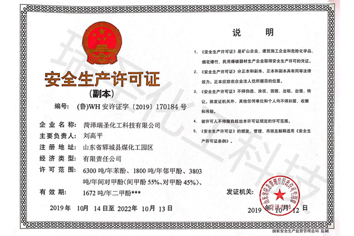 菏澤瑞圣化工科技有限公司是國內(nèi)酚類產(chǎn)品的生產(chǎn)企業(yè)。公司現(xiàn)有年加工粗酚20000萬噸的生產(chǎn)裝置及能力,可生產(chǎn)苯酚、鄰甲酚、間對甲酚、二甲酚等產(chǎn)品。產(chǎn)品廣泛應(yīng)用于合成樹脂、香料、染料、絕緣材料、阻燃劑、農(nóng)藥、醫(yī)藥、中間體等精細(xì)化工領(lǐng)域。本公司以誠為本,信譽(yù)保證,靠過硬的產(chǎn)品質(zhì)量和完善的服務(wù)贏得了國內(nèi)外廣大用戶的贊譽(yù)。產(chǎn)品暢銷國內(nèi)二十多個(gè)省市地區(qū),并地打入了國際市場,產(chǎn)品遠(yuǎn)銷意大利、巴西、印度、韓國、日本、臺灣等國家和地區(qū)。 公司坐落在菏澤市鄆城縣煤化工業(yè)園區(qū)。生產(chǎn)及檢測設(shè)備精湛,管理機(jī)制科學(xué),并擁有技術(shù)隊(duì)伍,產(chǎn)品質(zhì)量達(dá)到標(biāo)準(zhǔn)。 公司 2024年為打破國外對光刻膠及芯片樹脂所需間對甲酚,鄰甲酚,對甲酚的壟斷,經(jīng)過與國內(nèi)知名院校合作研究,設(shè)備進(jìn)行技改工藝進(jìn)行調(diào)整,產(chǎn)品質(zhì)量完全滿足光刻膠樹脂的需要。改變了長期依賴進(jìn)口的局面,為中國芯國產(chǎn)化貢獻(xiàn)了一份力量。 可靠的產(chǎn)品、可靠的質(zhì)量、可靠的信譽(yù)、完善的服務(wù)是我們的宗旨,我們將竭誠與海內(nèi)外各界朋友精誠合作,共圖發(fā)展,攜手共進(jìn),創(chuàng)造你我共同的未來。 企業(yè)的使命感與社會的責(zé)任感讓我們今天在